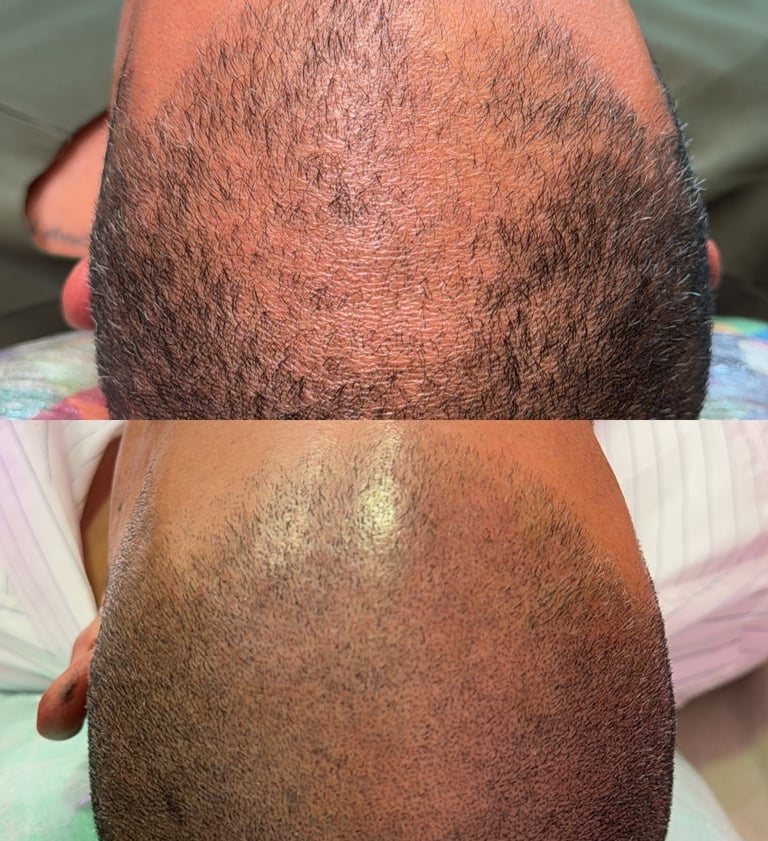Nanopigmentação capilar com micropontos estratégicamente posicionados para um efeito natural. Utilizamos técnicas seguras, com pigmentos estáveis e na camada correta da pele. Pode ser usado para preencher falhas ou avanços na linha capilar. Os pontos não estouram, nem se expandem com o tempo.