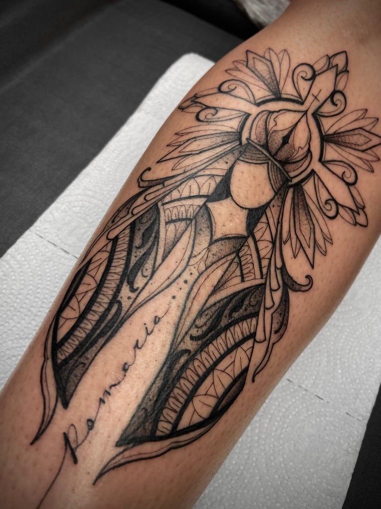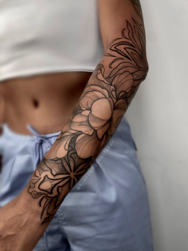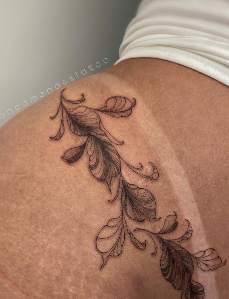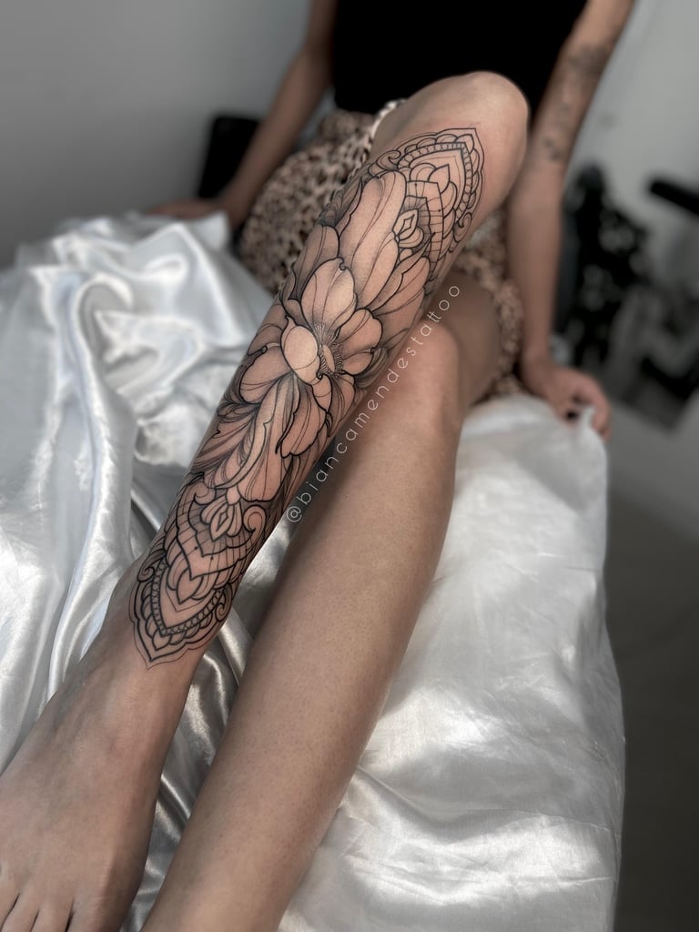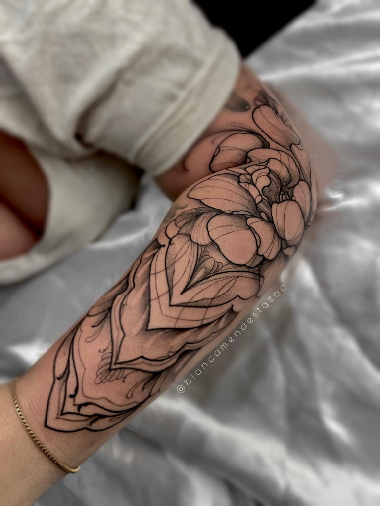Me especializei em Blackwork, fine line botânica, ornamental e geométrico, atraindo principalmente mulheres, que também buscam meu trabalho para camuflagem de cicatrizes indesejadas.