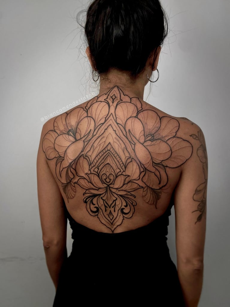 A biologia me permitiu trazer essência em minhas artes, autorais e criadas em parceria com o cliente, acompanhando a anatomia de cada corpo e se tornando única, por isso atendo somente 1 pessoa por dia, sendo um dia especial para meu cliente e para mim.