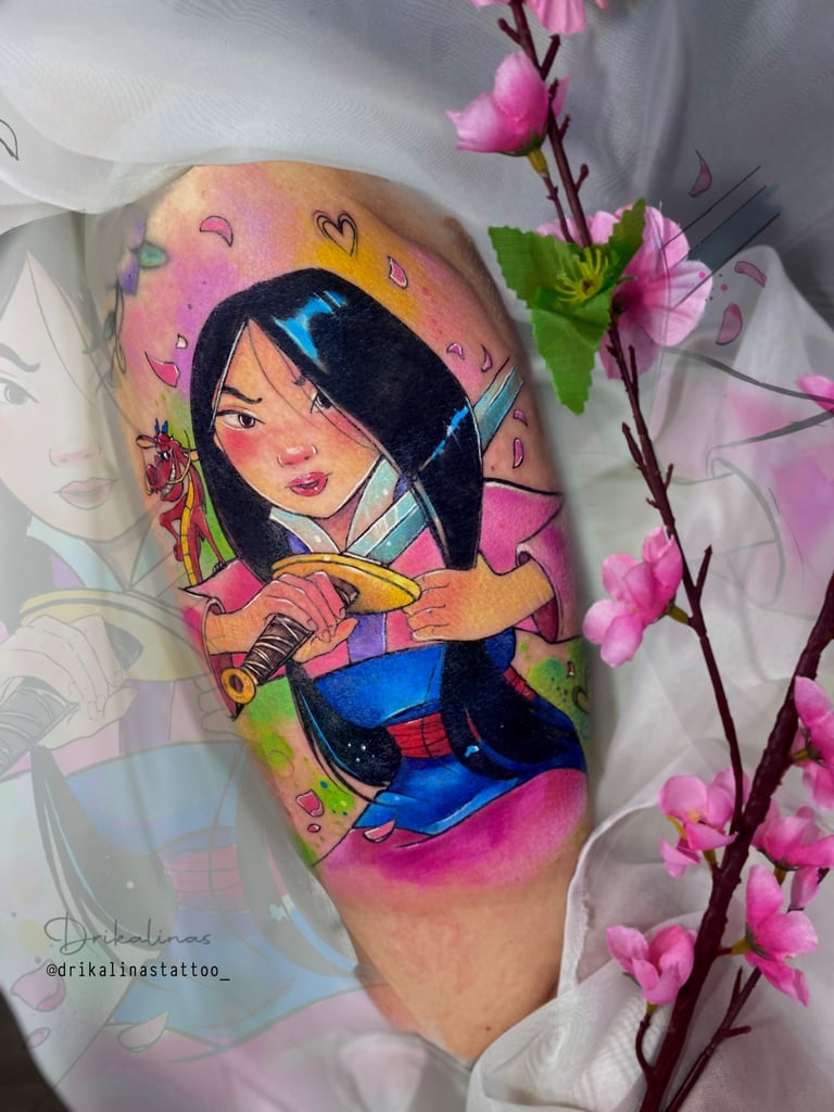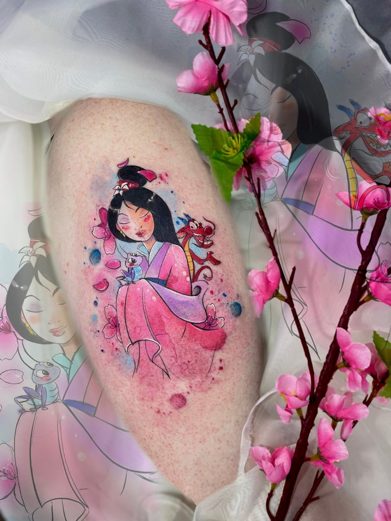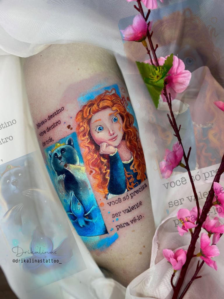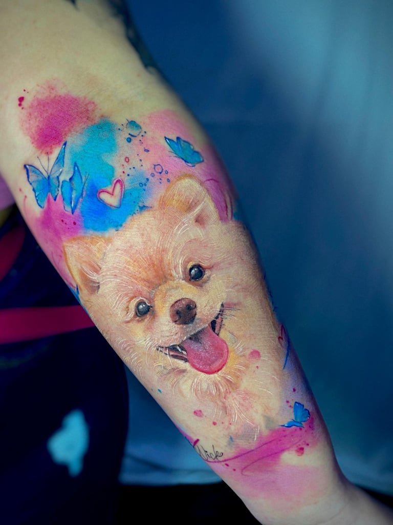 Hoje, cada projeto meu é como um quadro vivo, cheio de cor e significado. Sou fã das princesas Disney e do universo geek, então você vai ver isso nas minhas criações. Trabalho com tatuagens aquarela super exclusivas, pets realistas e florais cheios de detalhes. Me jogo de corpo e alma em cada traço, sempre em busca de aprender mais com outros artistas, seja em cursos, workshops ou viagens. Minha arte é a maneira de levar um pedacinho do meu mundo para cada cliente.
