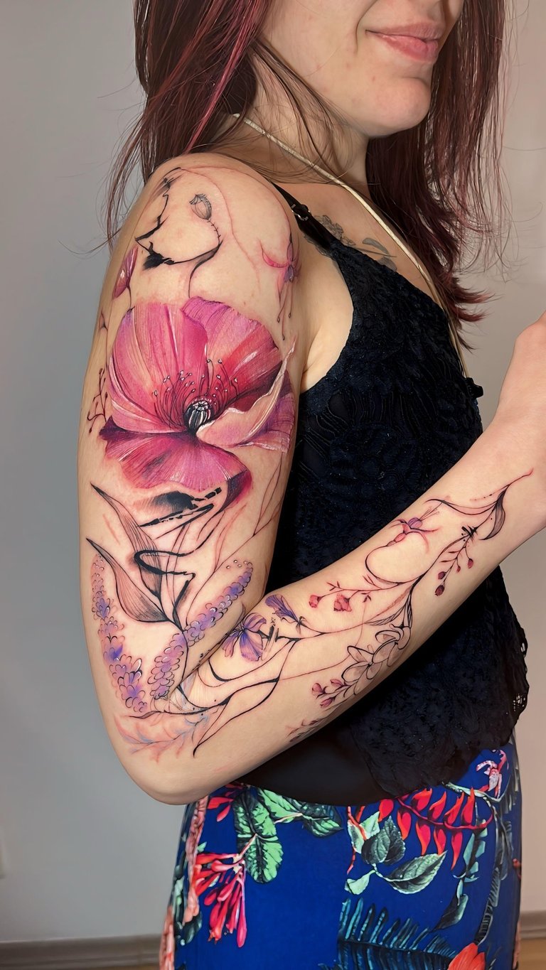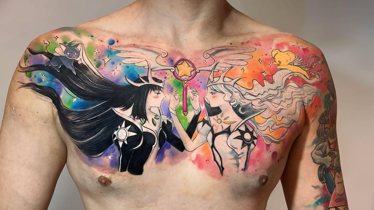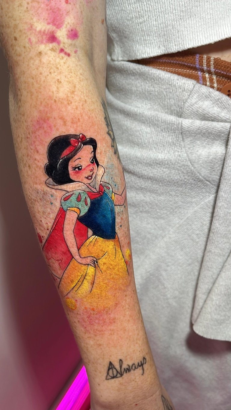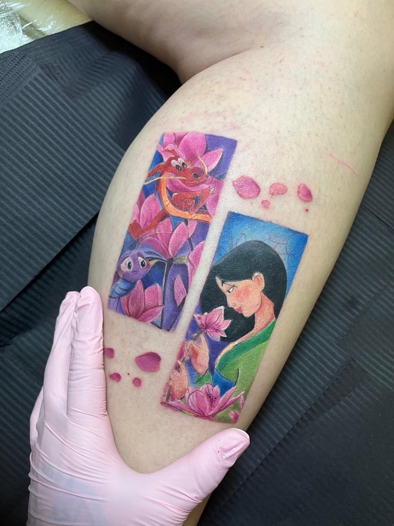 Hoje, cada projeto meu é como um quadro vivo, cheio de cor e significado. Sou fã das princesas Disney e do universo geek, então você vai ver isso nas minhas criações. Trabalho com tatuagens aquarela super exclusivas, pets realistas e florais cheios de detalhes. Me jogo de corpo e alma em cada traço, sempre em busca de aprender mais com outros artistas, seja em cursos, workshops ou viagens. Minha arte é a maneira de levar um pedacinho do meu mundo para cada cliente.