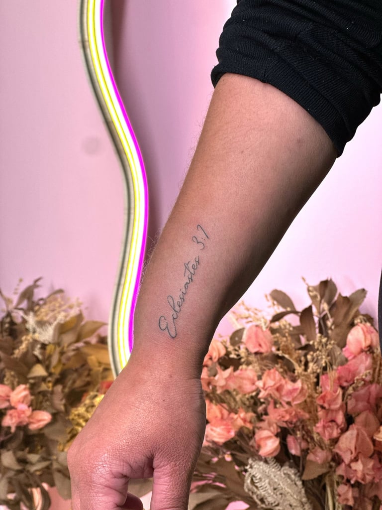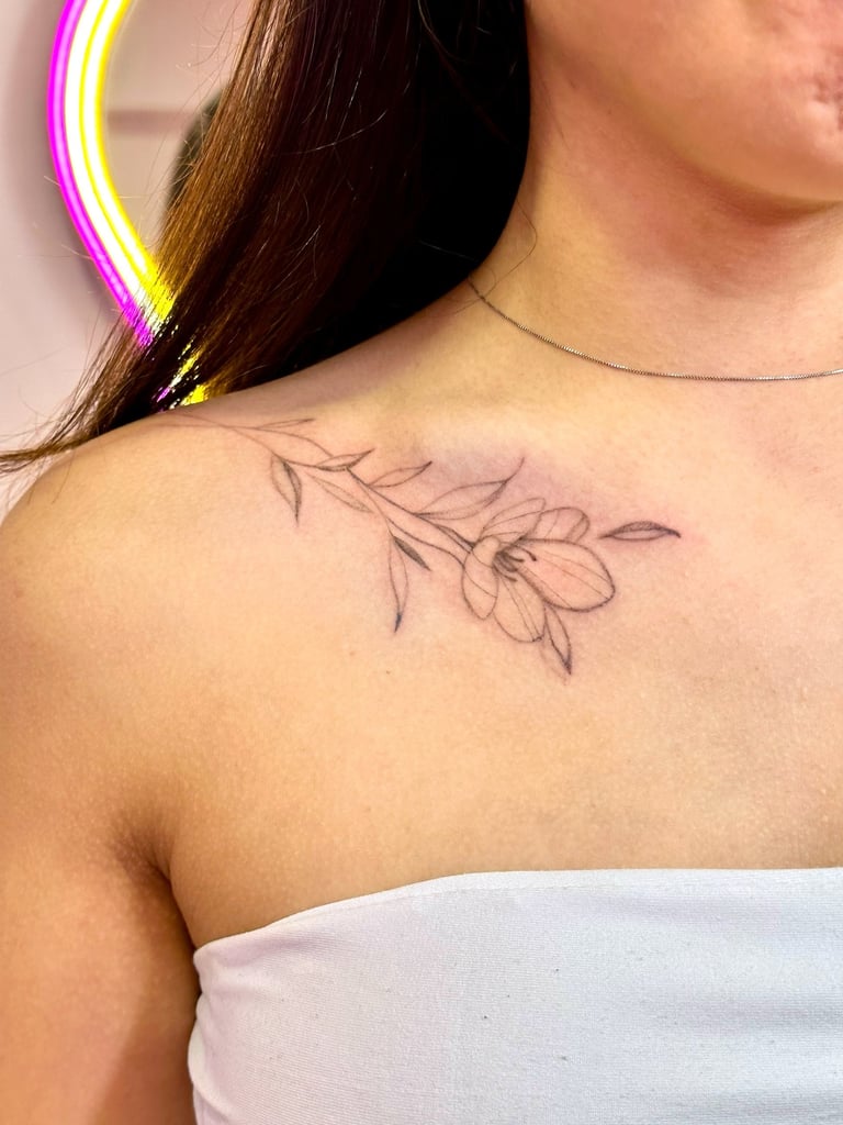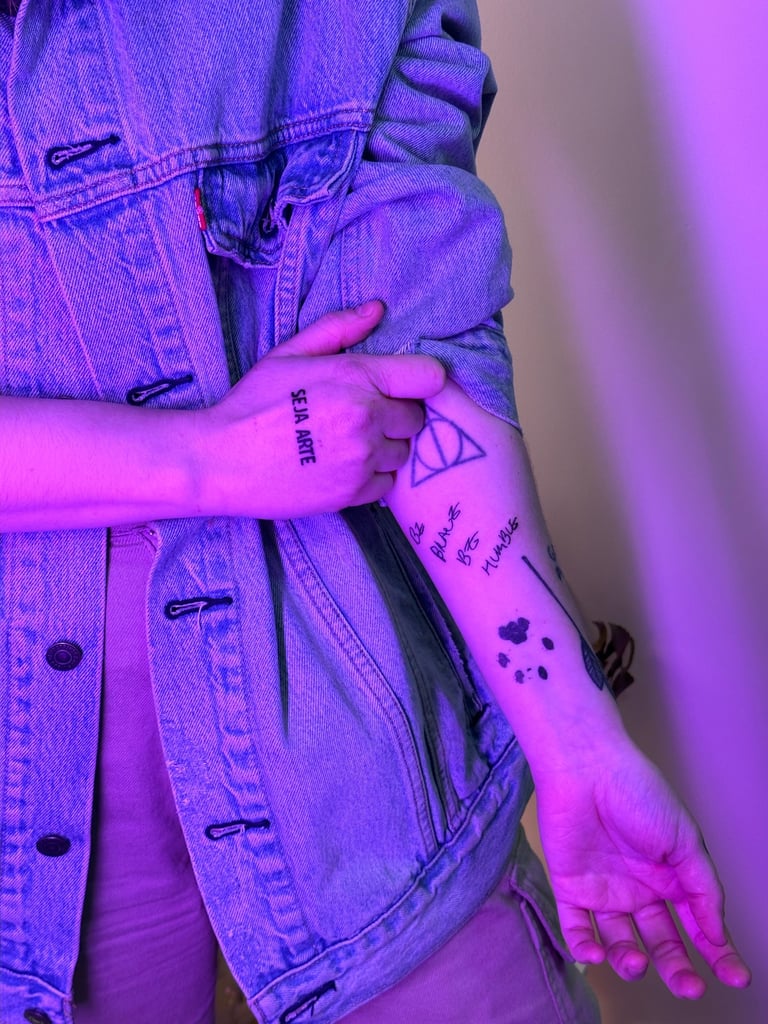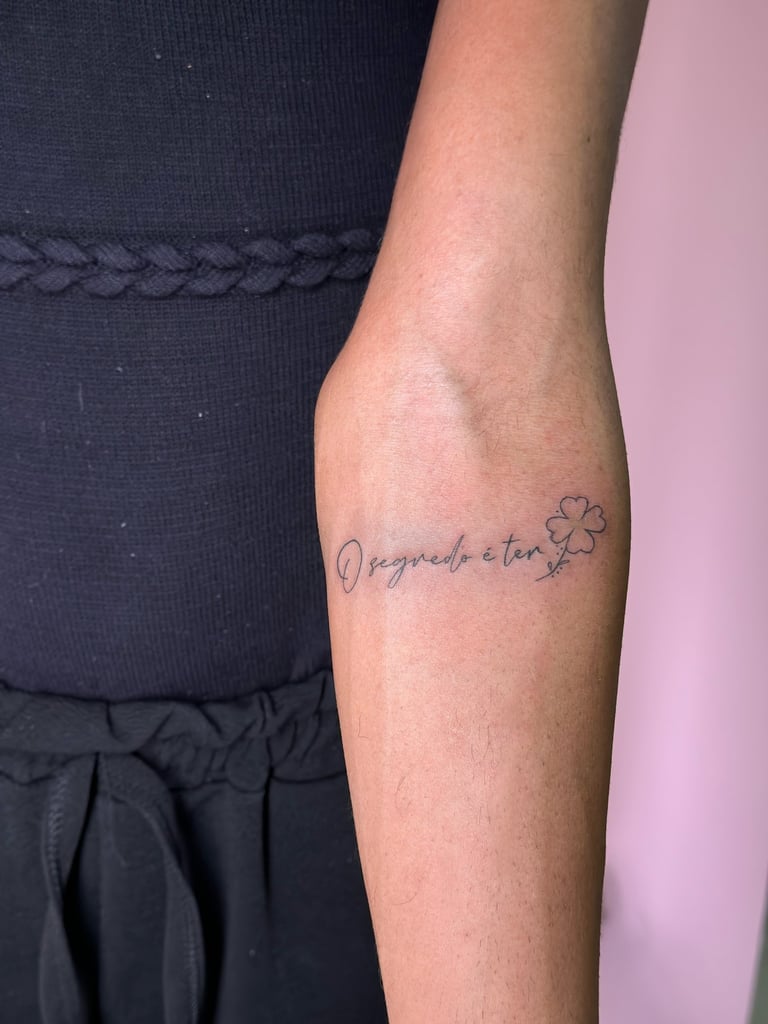 Meu estilo de tattoo: geek, cyber, blackwork e kawaii, mas além disso faço muito fine line, escritas e tattoos mais delicadas com efeito de transparência.