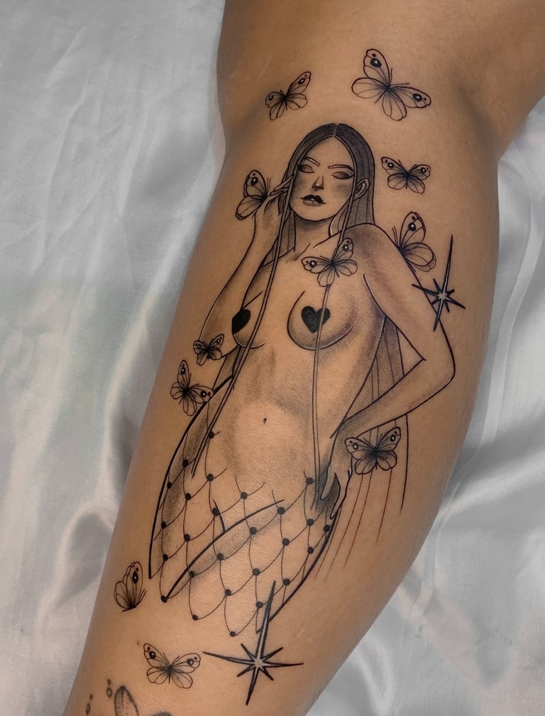 Estou tatuando profissionalmente desde 2021, e sigo estudando e aprimorando minhas técnicas, pois acredito que o conhecimento é algo infinito. Minhas maiores inspirações vem de artistas como René Magritte, Van Gogh, Sibylline Meynet e Hayao Miyazaki.
