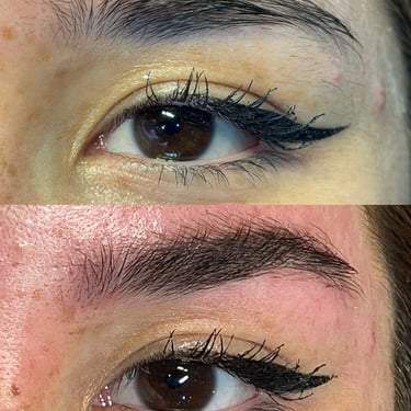 A evolução da micropigmentação, a nanopigmentação de sobrancelhas é uma técnica fio a fio. Mas para quem tem pouquissimos fios ou nenhum, ou goste de uma sobrancelha mais marcada as vezes somente o fio a fio não resolve, então combinamos a técnica fio a fio com uma técnica de micropigmentação do meio pro final. Daí o design fica mais marcado e a linha inferior também.