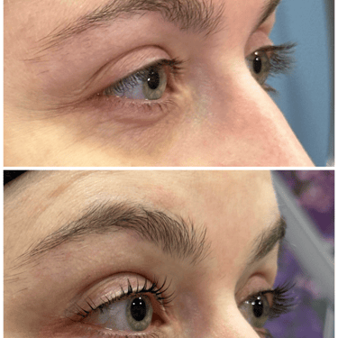 Nesse procedimento nanopigmentamos a pálpebra com muito carinho e cuidado pra dar esse efeito foxy eyes. Aplicamos uma cor mais escura na raiz dos cílios para um efeito delineador, e vamos clareando a medida que subimos para parecer uma sombra esfumada. Também deixamos uma parte do delineador retinha pra dar o efeito foxy, como se levantasse seu rosto e olhar.